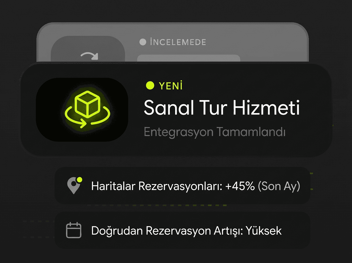 Otel, restoran ve tesis alanlarınızı sanal turla tanıtın. Google Haritalar entegrasyonu ile doğrudan rezervasyon artışı sağlayın.